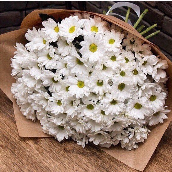Высота стебля хризантем 60 см, кол-во хризантем в букете 15 шт.