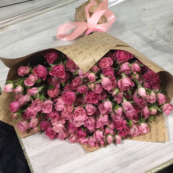 Высота стебля кустовых роз 60 см, кол-во роз в букете 29 шт.