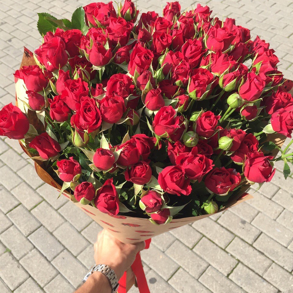 Высота стебля кустовых роз 60 см, кол-во роз в букете 29 шт.