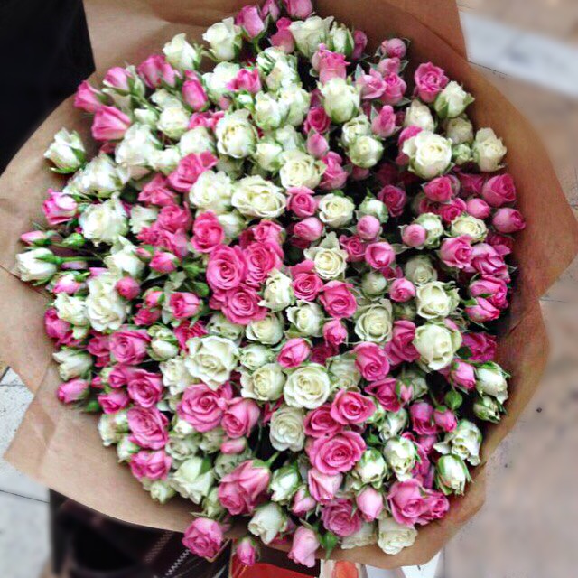 Высота стебля кустовых роз 60 см, кол-во роз в букете 39 шт.