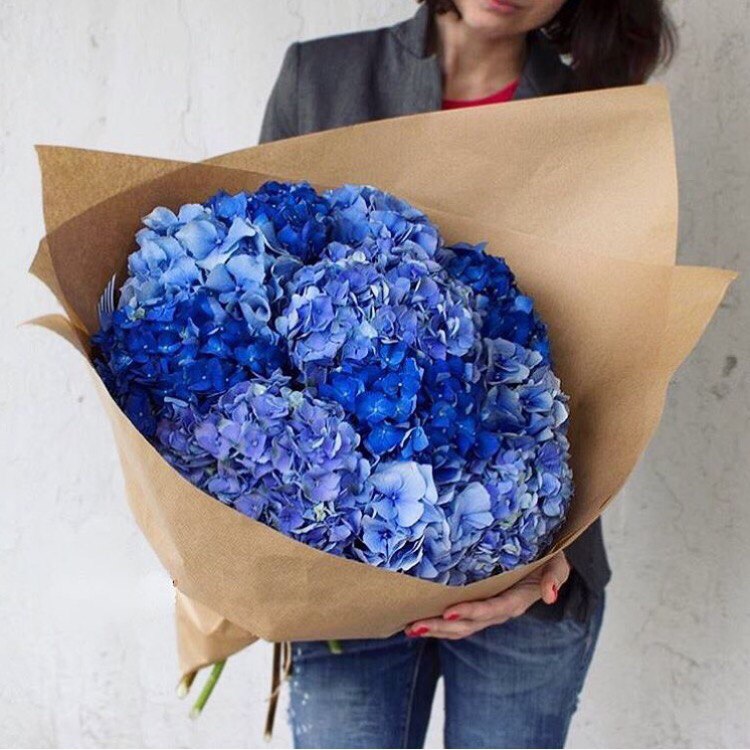 Высота стебля гортензии 50 см, кол-во гортензии в букете 9 шт.