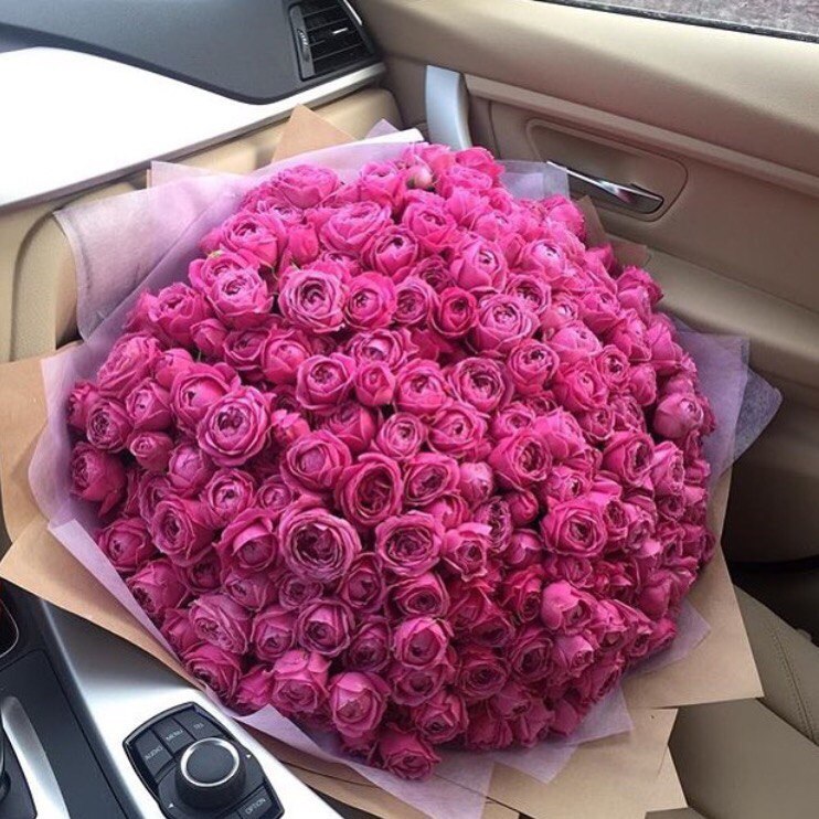 Высота стебля пионовидных кустовых роз 50 см, кол-во в букете 51 шт.