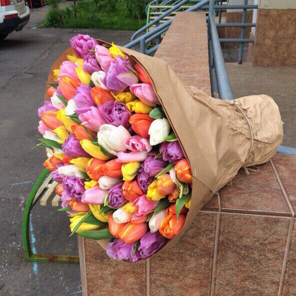 Высота стебля тюльпанов 40-50 см, кол-во в букете 101 шт.