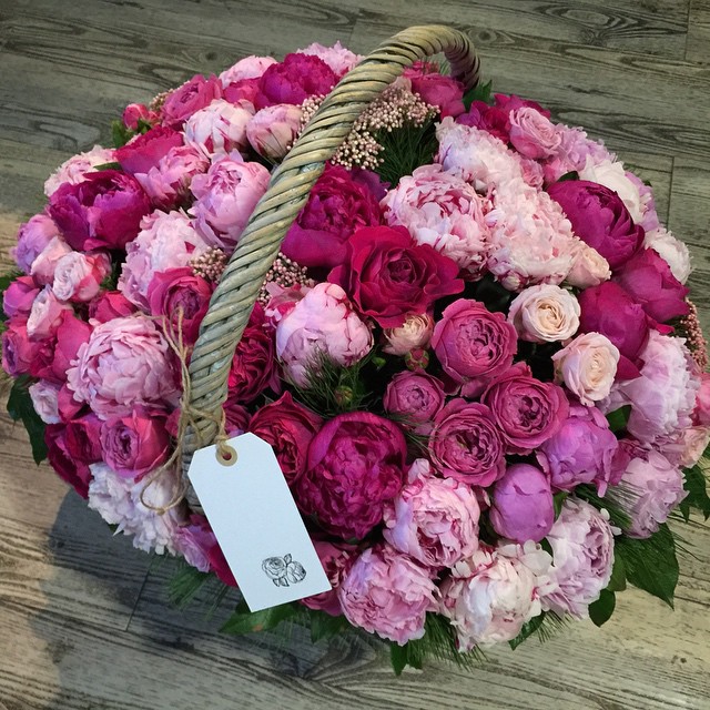 Кол-во пионов в корзине 51 шт. + 20 веточек кустовой пионовидной розы !